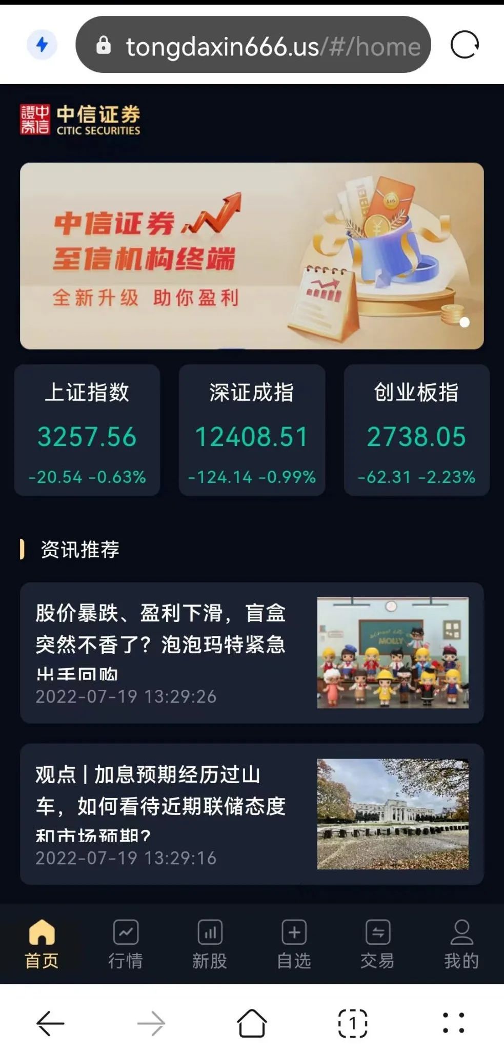 而在“中信证券群”,相关开户流程基本类似。群助理首先给了每经记者一个链接,(tongdaxin666.us/#/home),当记者把链接复制后打开的是一个非官方的网址,网页显示是“中信证券至信机构终端”。