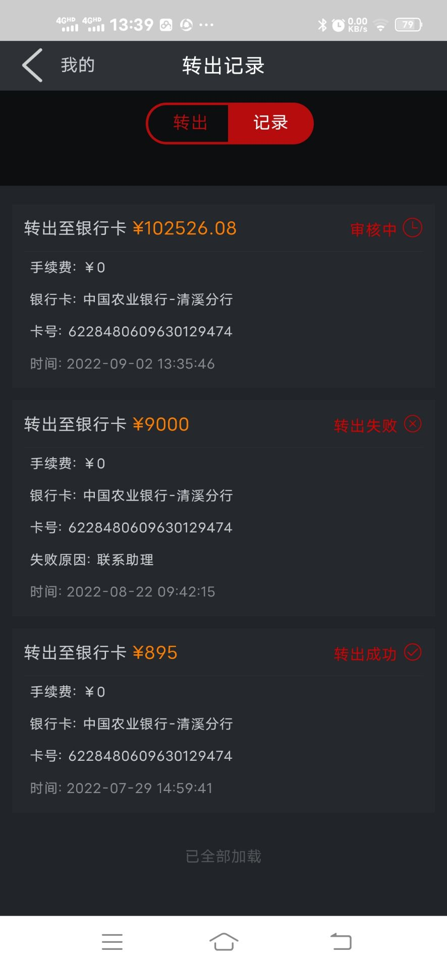今年7月29日他曾成功转出一笔895元,在8月22日他曾试图转出一笔9000元却遭遇失败,失败的原因竟然为“联系助理”。9月2日下午1点多,他再度试图转出一笔10.2526万元,又未如愿转出。