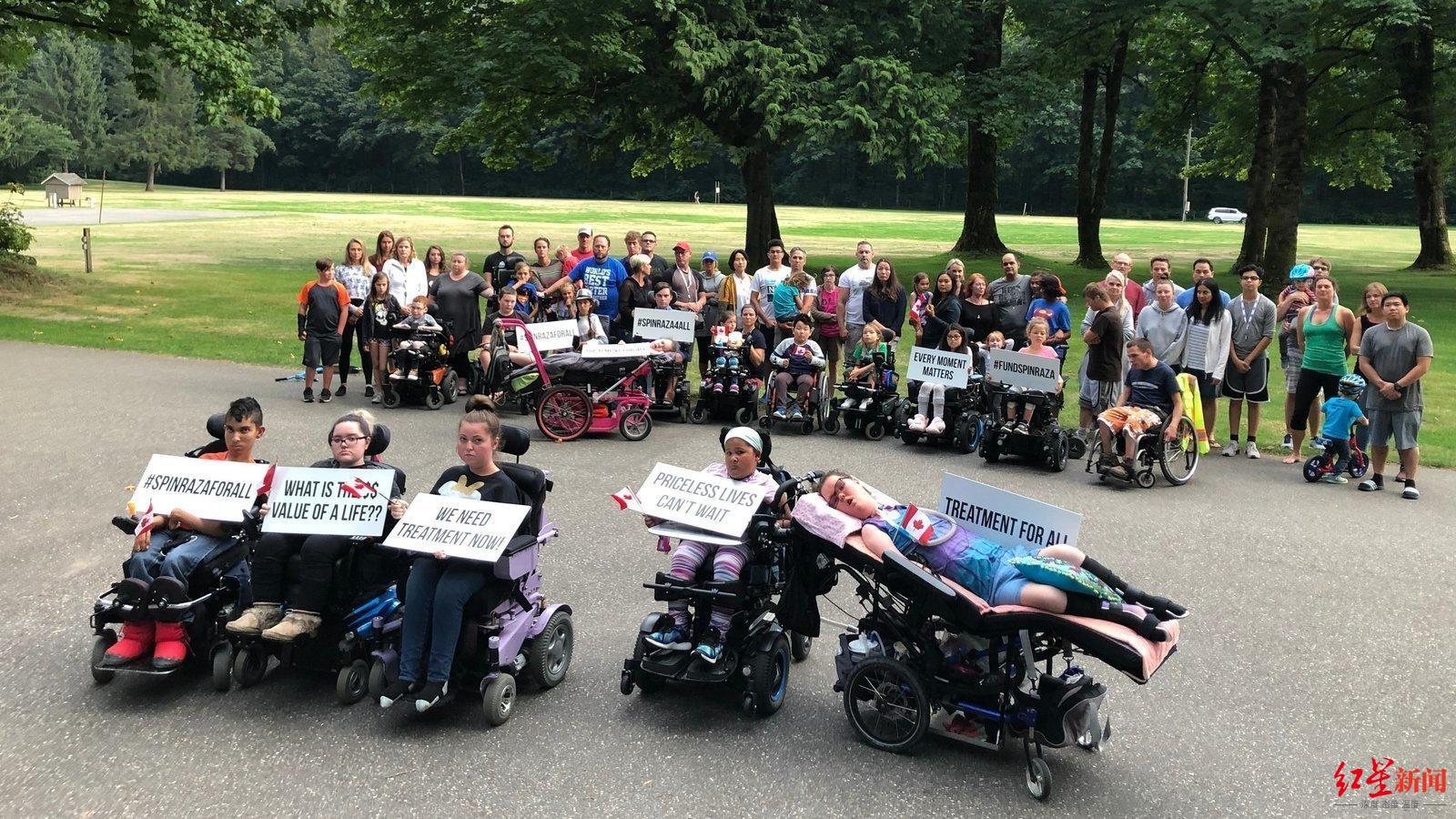 加拿大不列颠哥伦比亚省SMA患者聚集请愿,希望当局批准一种名为“Spinraza”的治疗方法。图据CureSMACanada