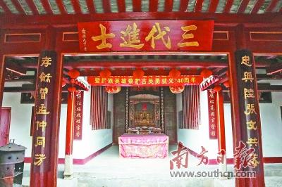 蔡蒙吉故居的中堂高高挂着“三代进士“的牌匾。 南方日报记者 何森垚 摄