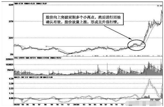 当股价有效突破某一个重要价位时,如前期最高价、整数价位等,意味着上方的压力被成功消化,原先的压力成为现在的支撑,后市股价将继续上涨,那么这个信号获得确认。如果得到更多的辅助信号支持时,那么股价突破就有效,主升浪的信号越强。
