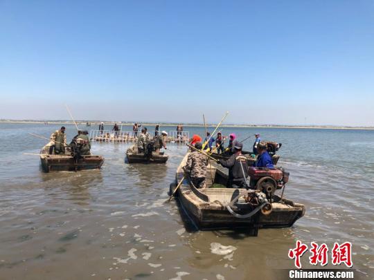 图为大连玉洋集团育苗基地工人正在采捕自主培育的新品种“斑马哈”。 杨毅 摄