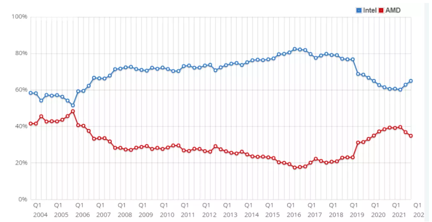 截至1月27日,英特尔和AMD的CPU市场份额对比