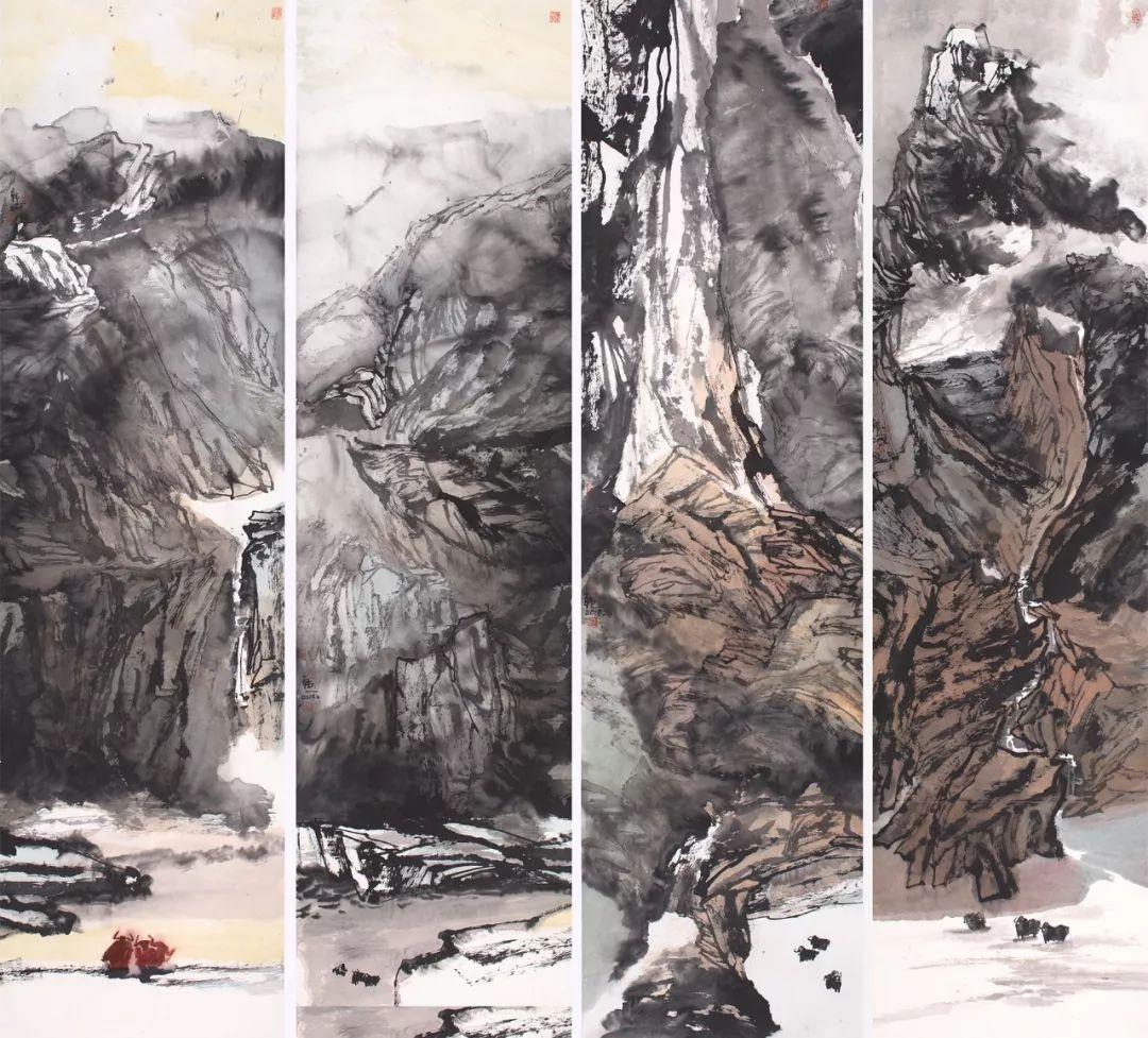 2019 纸本水墨 180x45cmx4 天地间