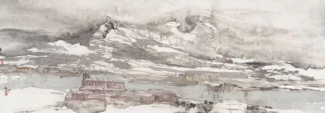 2018 纸本水墨 68x248cm 雪域