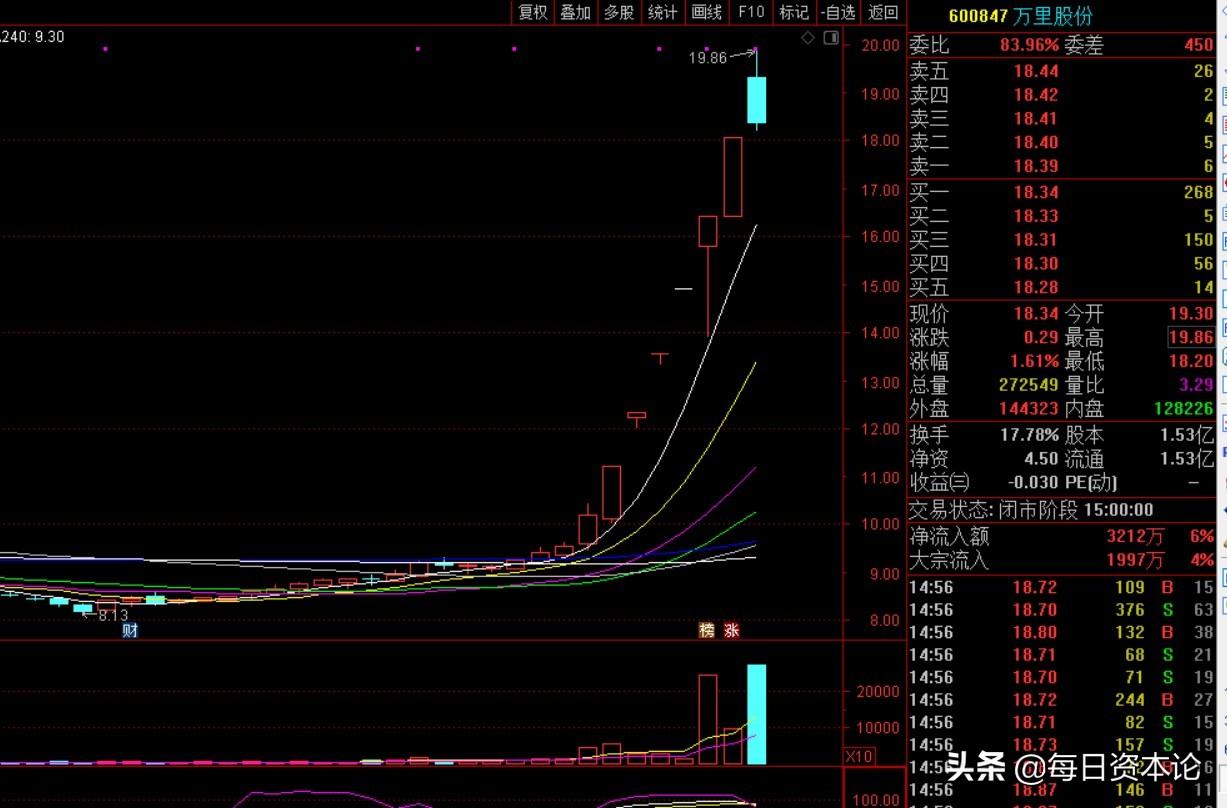 12月7日,重庆万里新能源股份有限公司(下称 万里股份)股价大幅高开后直接拉至涨停,然后高位震荡,尾盘快速快速杀跌。截至当日收盘,其股价为18.34元元,上涨1.61%,总市值28.11亿元。