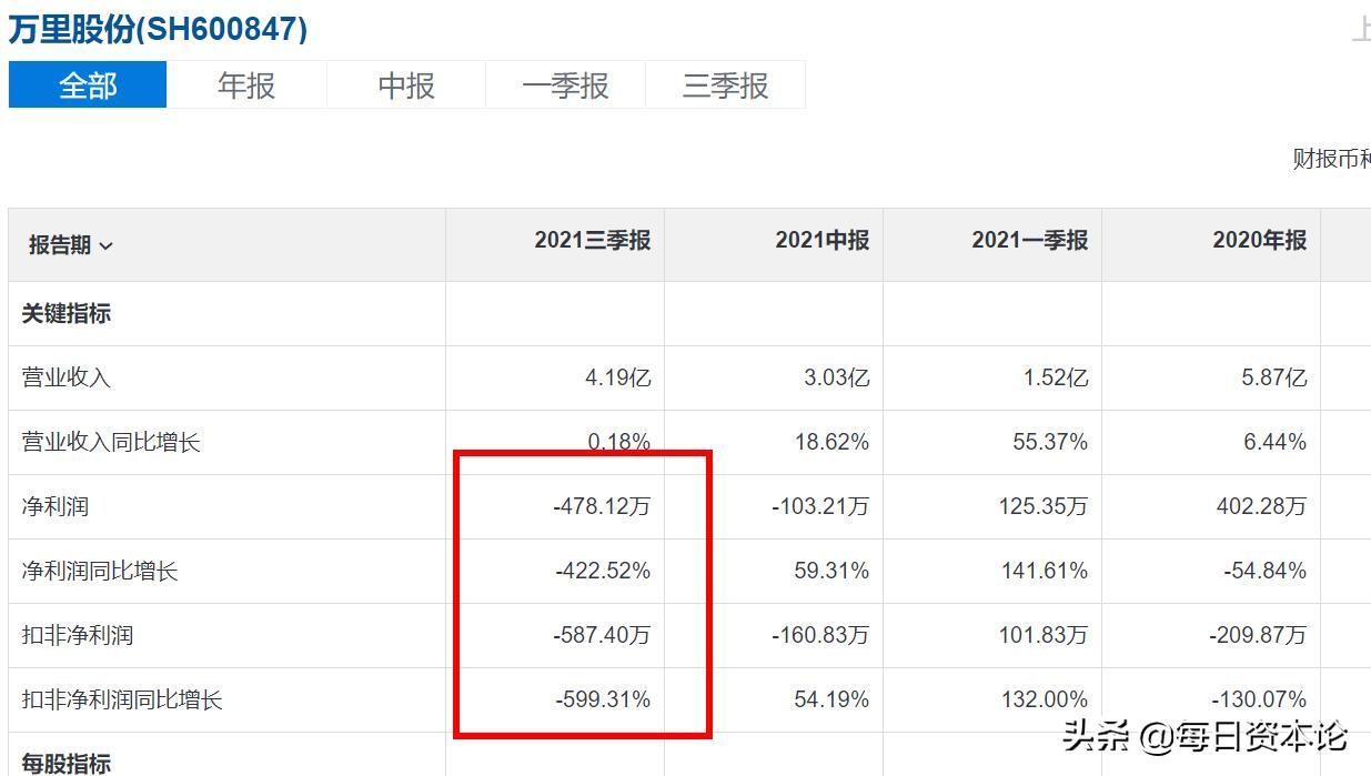 净利润震荡更为明显。2016年万里股份亏4200多万,2017年盈利1557万元,2018年巨亏1.56亿元,2019年盈利890万元,2020年净利下滑到只剩402万元。2021年二季度其净利润再度亏损,三季度亏损扩大至478.12万元,同比跌422.52%。