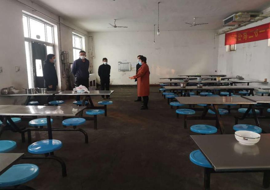东光县市场监管人员实地了解企业员工食堂卫生管理情况。