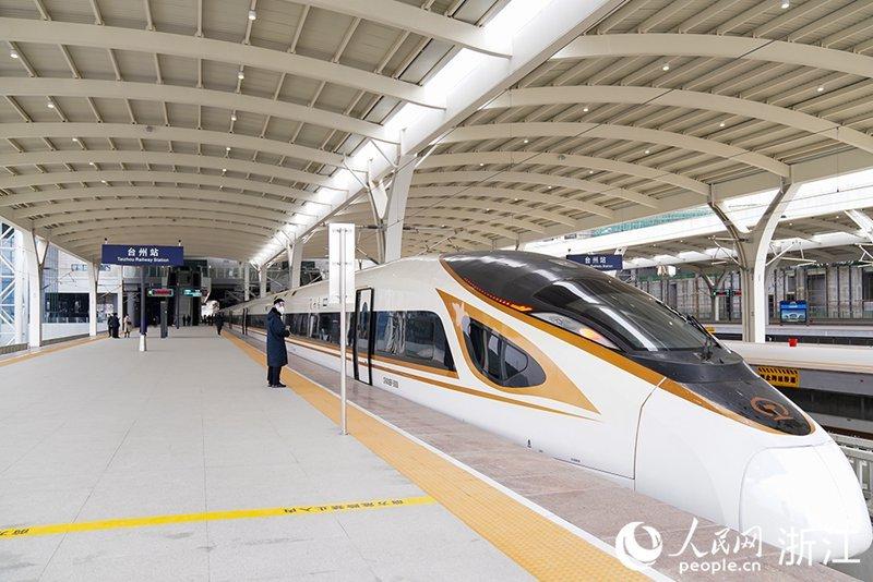 1月8日,杭台高铁首趟列车即将驶出。人民网 秦文摄