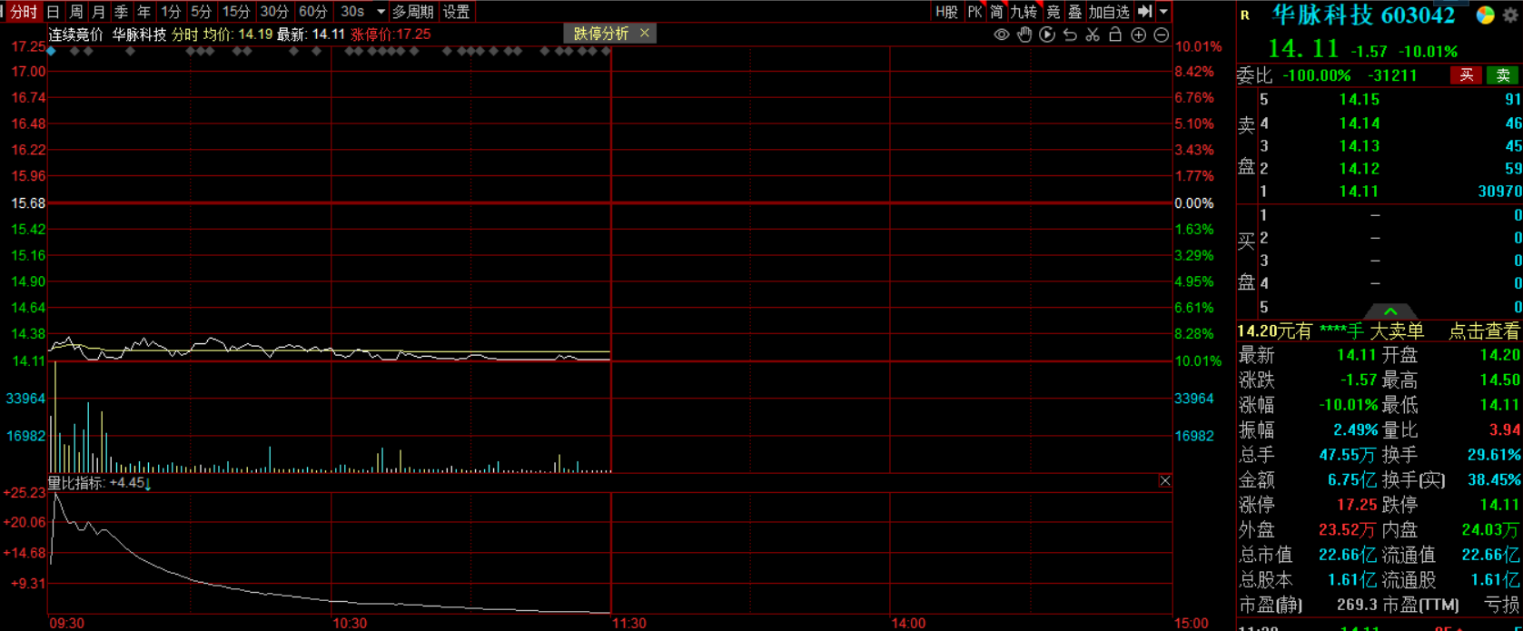 3月7日,华脉科技再度跌停,截至午盘报14.11元。值得注意的是,华脉科技在前一个交易日跌停,在此之前,其连续5个交易日涨停,上周周涨幅高达61%。