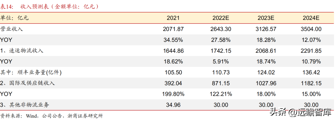 1)考虑公司业务在疫后消费修复、退换货渗透率提升、新业务拓展之下稳健增长,假设公司速运物流业务量2022-2024年同比分别+5.0%、+12.0%、+10.0%。