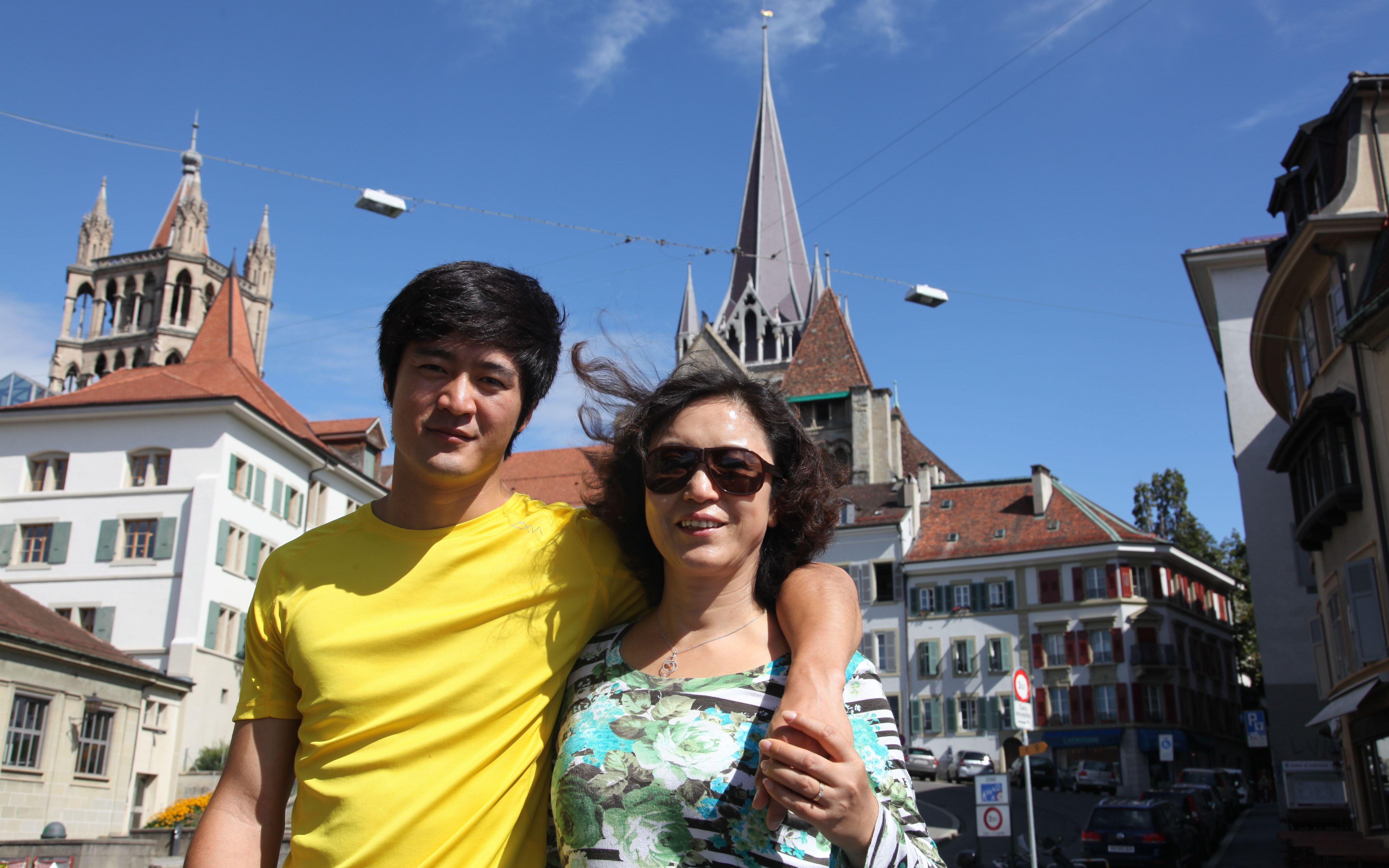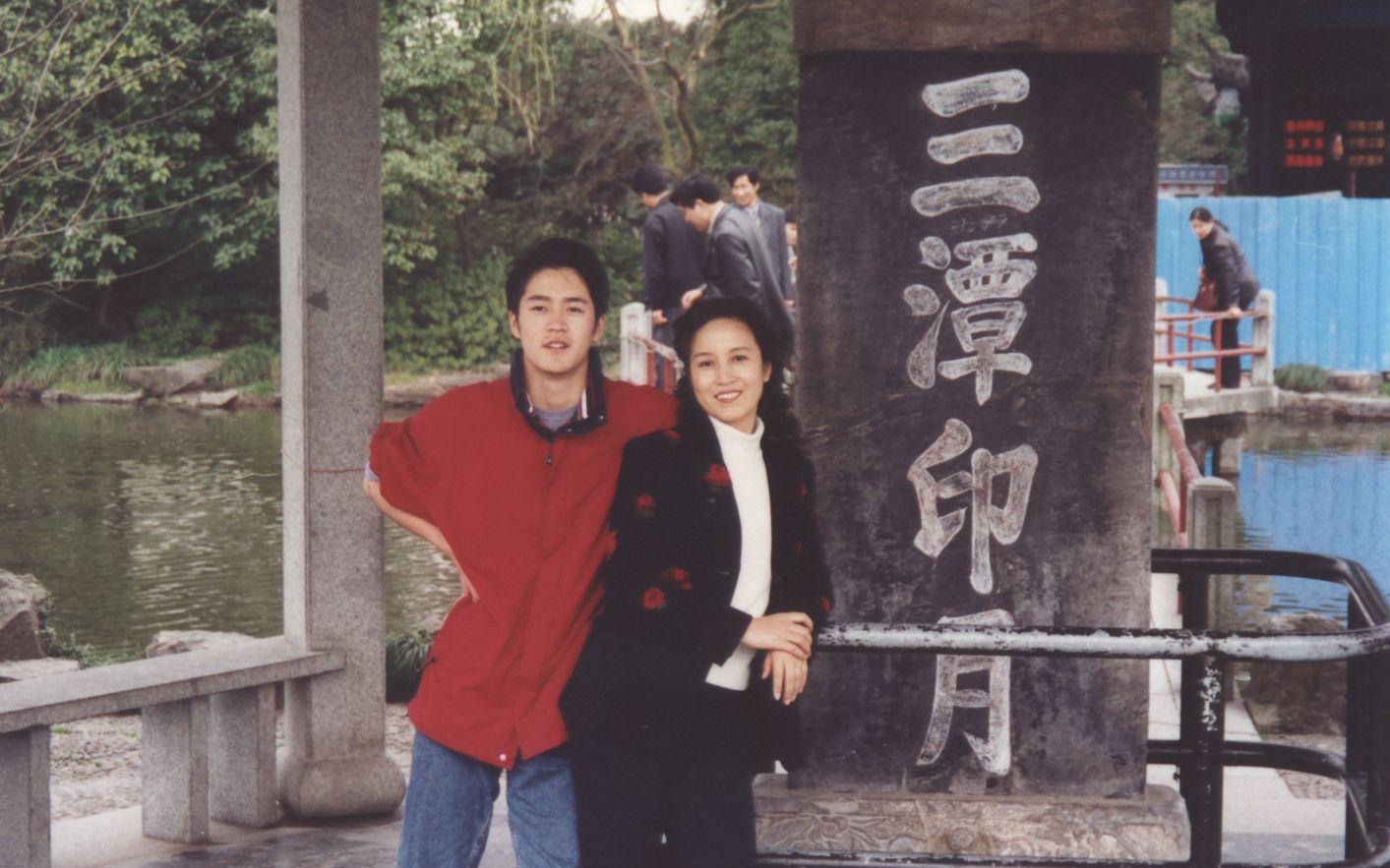 2001 年,毛爱珍陪18 岁的尚于博参加完艺考,拿到中央戏剧学院的好成绩后出来游玩。受访者供图
