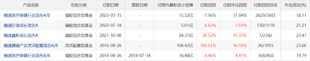 Choice数据显示,他管理的融通健康产业基金为例,2019~2022年的业绩表现持续保持在同行的前1/5。2022年,迈入同类排名前50名。