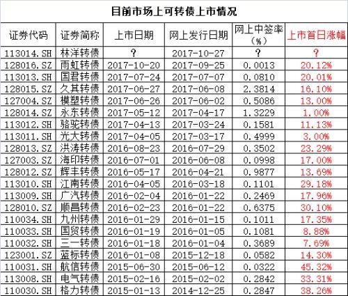 雨虹转债上市涨了20%,从2016年以来的情况,可转债上市首日的收益率大致在10%-30%之间,也就是中签了都是赚钱的。过去的情况大概是什么样子,目前市场上交易的可转债,上市首日没有负收益的。