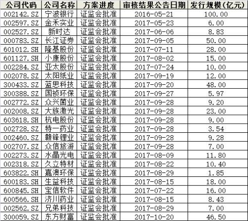 公开数据显示,在最新的可转债发行进度中,已有24家公司的可转债发行通过证监会的批准。包括宁波银行、金禾实业、新时达、长江证券、隆基证券、小康股份、亚太股份、太阳纸业、蓝思科技、国祯环保、众兴菌业、大族激光、杭电股份、特一药业、赣锋锂业、众信旅游、水晶光电、久立特材、嘉澳环保、生益科技、宝信科技、济川药业、兄弟科技、东方财富,发行规模合计达464.8亿元。