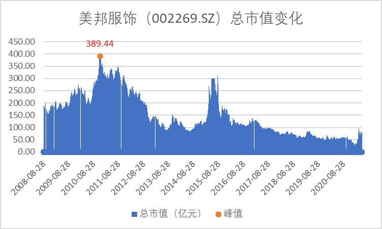 2010年美邦服饰的市值达到了389.44亿元顶峰,而周成建家族也因此三年蝉联胡润中国服装富豪榜冠军,直到2011年被森马服饰的邱光和家族超越。