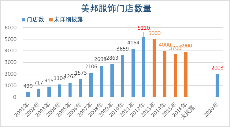 上市之后的美邦风头一时无两,门店迅速扩张至2012年的5220家,基本上中国每个城市都有美特斯邦威的门店,其品牌几乎无人不晓。