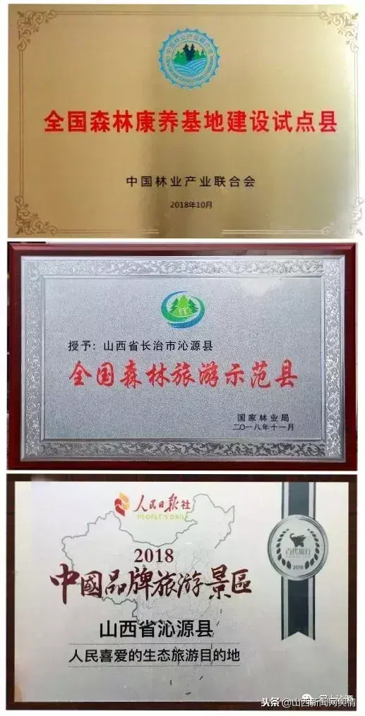 10月21日,在第二届中国森林康养与乡村振兴战略论坛暨全国森林康养基地建设交流会上,沁源县被授予“全国森林康养基地建设试点县”,成为山西省唯一获此殊荣的县份;12月16日在广东省广州市举办的2018中国森林旅游节上,沁源县被国家林业和草原局授予“全国森林旅游示范县”;12月19日,在人民日报社报告厅举办的“2018中国品牌旅游发展论坛”上,沁源县又荣获2018中国旅游品牌景区,被誉为“人民喜爱的生态旅游目的地”。今年以来,沁源县不断依托生态资源优势,大力实施“绿色立县,建设美丽沁源”战略,全面打造“夏住沁之源、冬享民俗年”和“康养度假胜地、沁源国际慢城”的森林康养旅游品牌,着力建设“全域旅游大乐园、全域度假大游园、全域康养大田园、全域美丽大花园、全域友善大家园”,逐步形成了集森林观光、康养、探险、科研与当地传统文化、红色文化、民俗文化紧密融合的全域旅游体系。先后建成了灵空山国家级自然保护区、沁河源国家级湿地公园等森林旅游景点15处,建立森林康养基地11处,森林旅游逐步成为拉动县域经济的新引擎。与此同时,沁源县连续七年获评“中国深呼吸小城100佳”、连续五年获评“中国中小城市最具投资潜力百强县”。