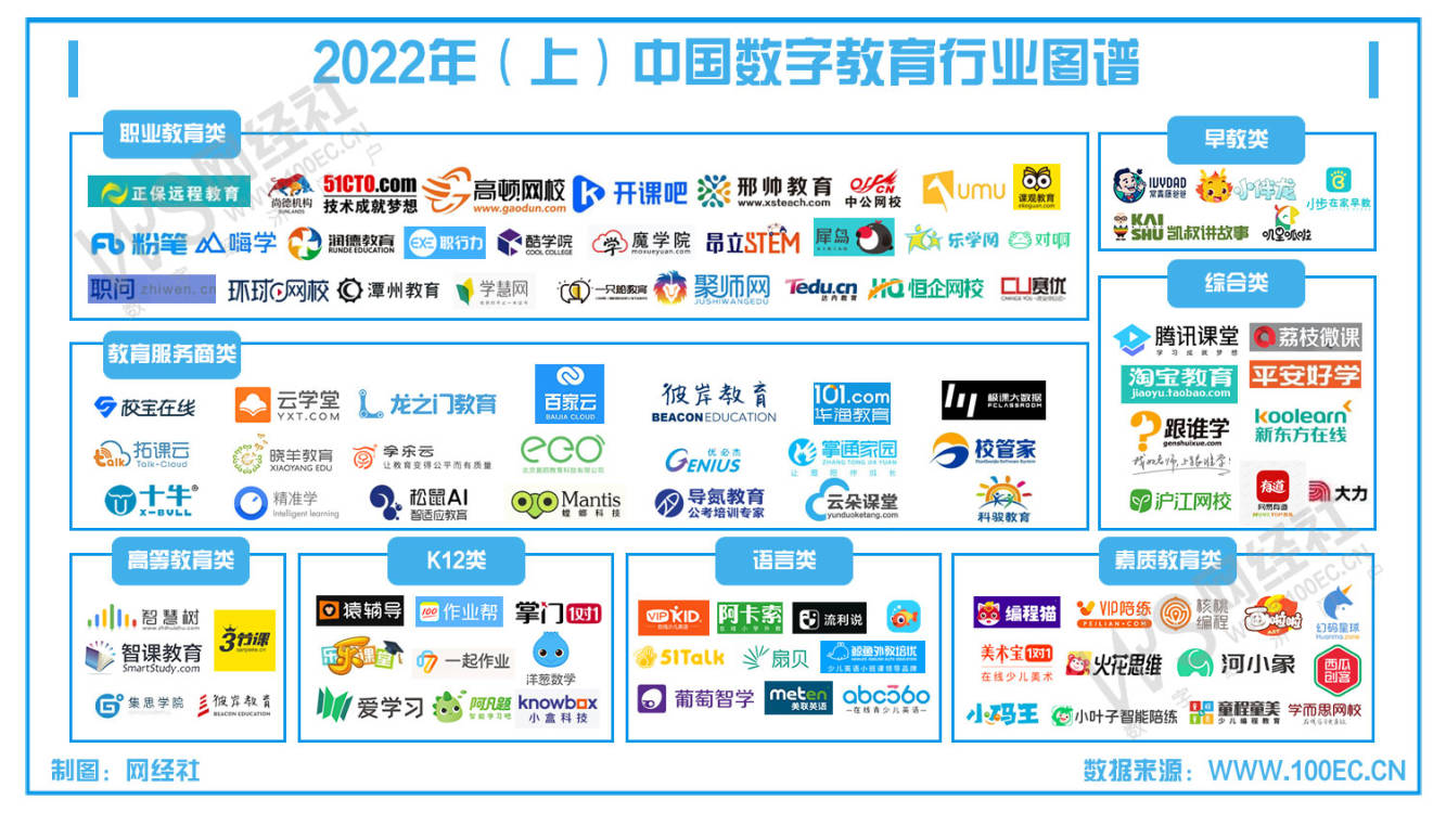 正保远程教育、尚德机构、51CTO、开课吧、邢帅教育、中公网校、UMU、粉笔网、嗨学网、职问、环球网校、潭州教育、学慧网、一只船教育、达内教育、对啊网、赛优教育等;