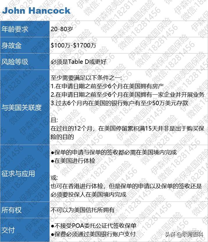——Super Preferred NonSmoker(在投保人不抽烟并且身体健康的情况下),这点还是相当不错的。其次接受在香港进行体检,但是保单的申请以及保单的签收还是必须要投保人在美国境内完成。