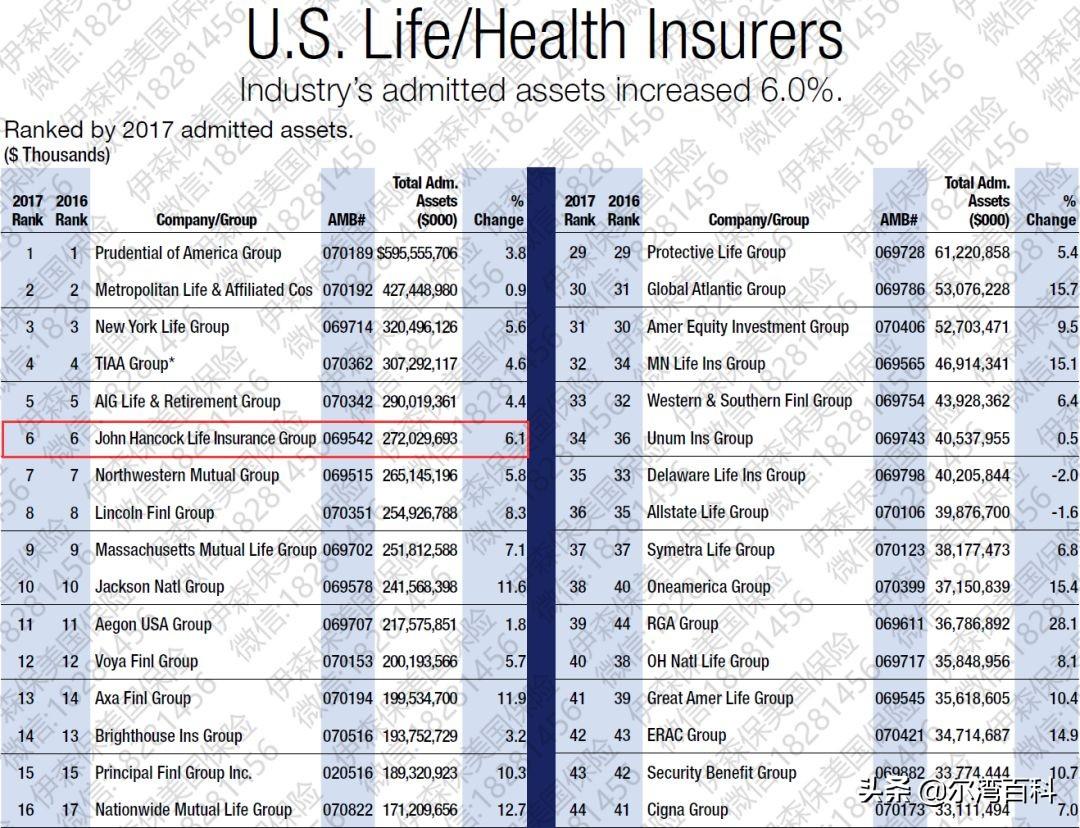 在2017年贝氏评级机构排名中,John Hancock约翰汉考克人寿保险公司管理资产规模总额