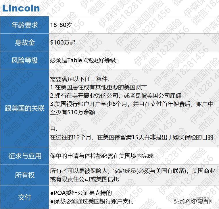 Lincoln投保要求: