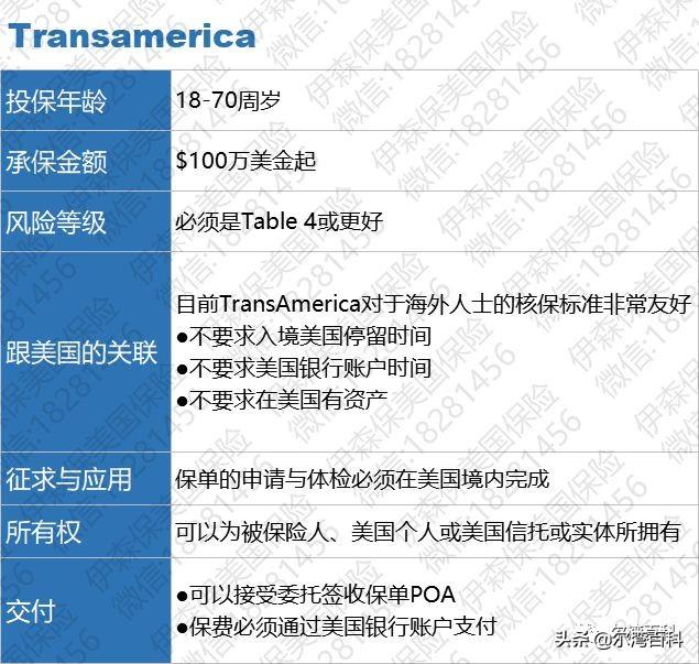 Transamerica投保要求:
