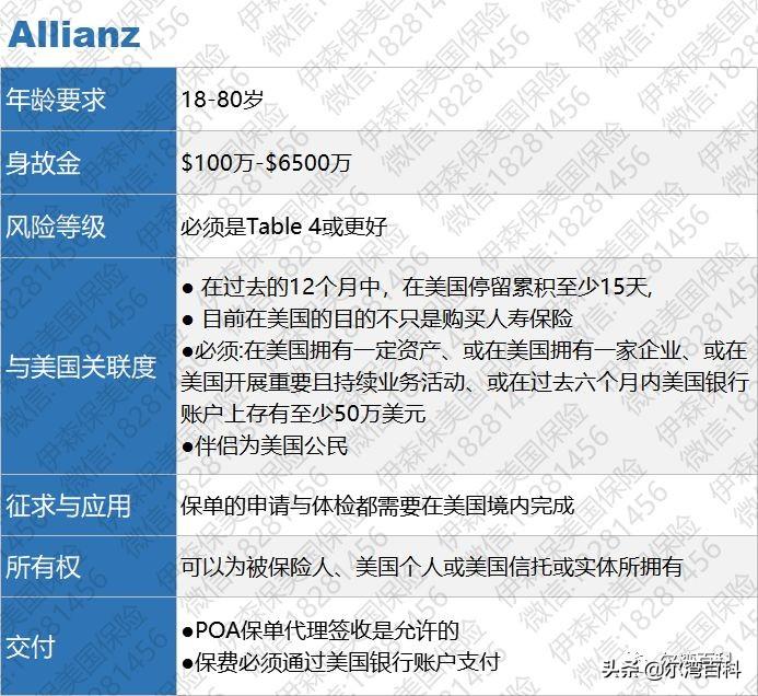 Allianz投保要求: