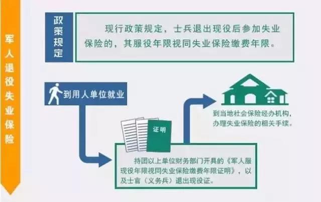 退役士兵到用人单位就业后,所在单位或本人要持军队财务部门开具的《军人服现役年限视同失业保险缴费年限证明》,以及士兵退出现役证,到当地社会保险经办机构,办理参加失业保险手续。