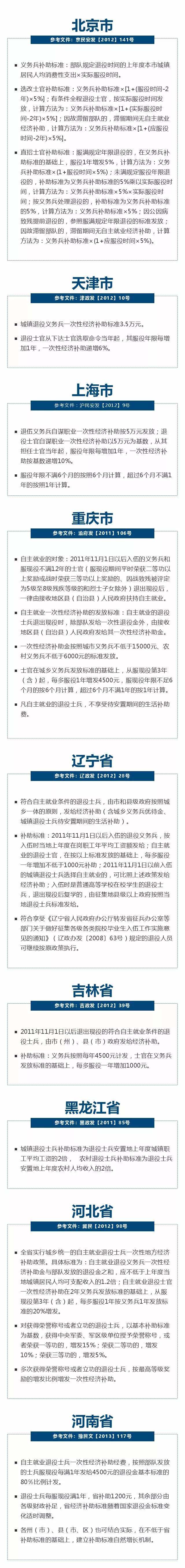 全国各省市退役士兵