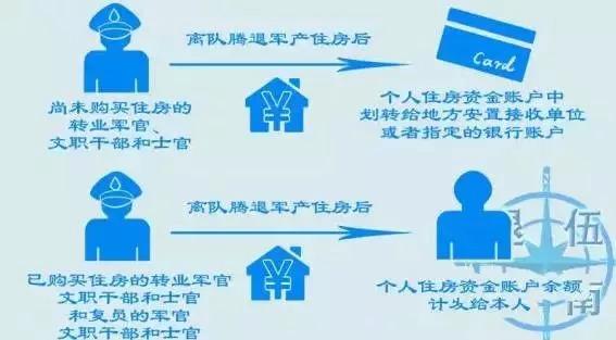 对尚未购买住房的转业军官、文职干部和士官,在其离队腾退军产住房后,从个人在住房资金账户中划转给地方安置接收单位或者指定的银行账户;