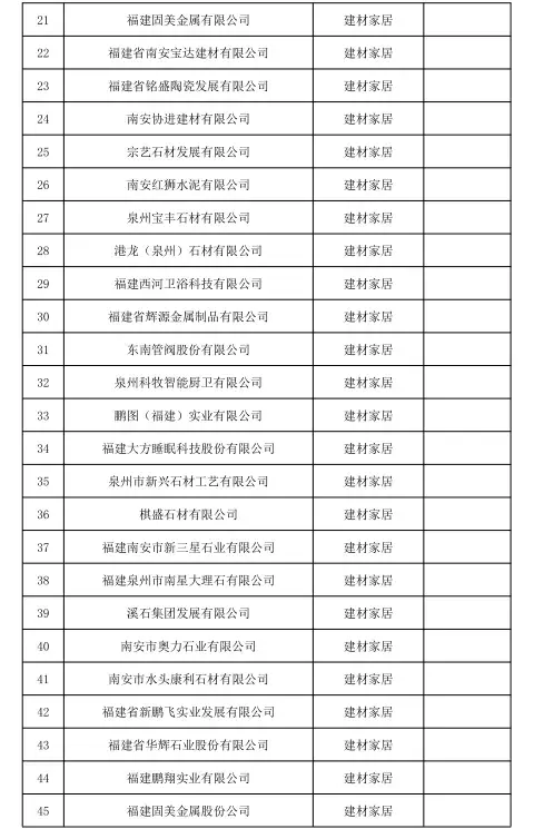 我市九牧厨卫股份有限公司等56家企业名列其中,入选企业数位列泉州市各县(市)第二位,其中,27家泛家居产业联合会会员企业榜上有名。