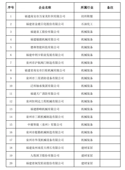 近日,泉州市工业和信息化局公布了“2020年市级产业龙头企业名单”,共有260家企业入选,