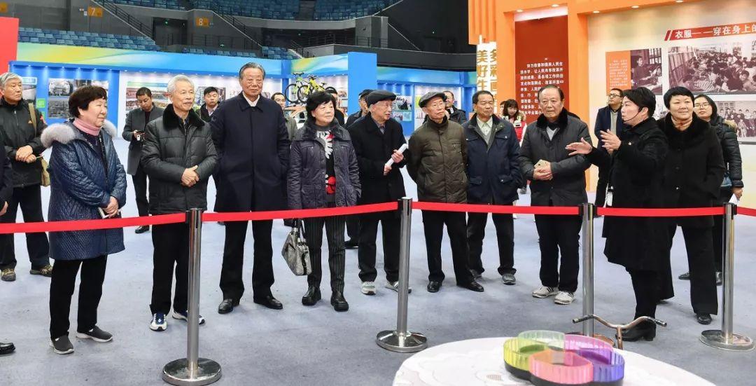 “我们那时骑的也是二八大杠!”“当时流行涤纶、腈纶做衣服。”“我家以前也有这种电视。”……主题展展出的一些生活老物件,也引发了老干部们的共鸣,他们纷纷感叹生活的日新月异。