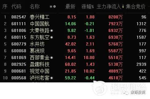 春兴精工、中国国航、大秦铁路、东方航空、水井坊、葛洲坝、西部黄金、盈趣科技、视觉中国、泸州老窖