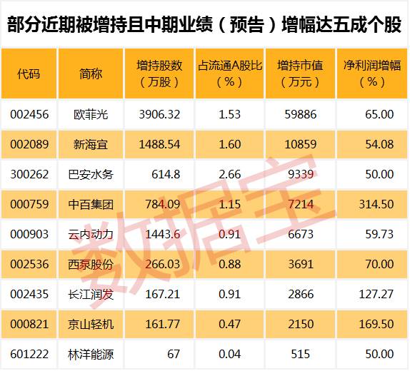 等公司净利润同比大幅增长,增幅分别高达314.50%、169.50%、127.27%。这些绩优且被增持的个股,或是股价已经被低估,或是未来潜力较大,值得关注。