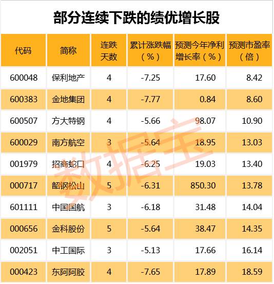 值得注意的是,67只连续下跌且累计跌幅超过5%个股中,10只个股按照机构预测(5家以上机构预测)的今年年度净利测算市盈率低于20倍且净利正增长,