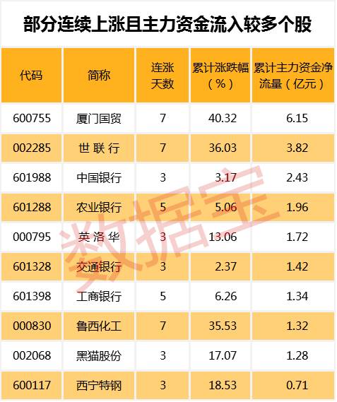 多股连涨超五日 厦门国贸七日吸金超6亿