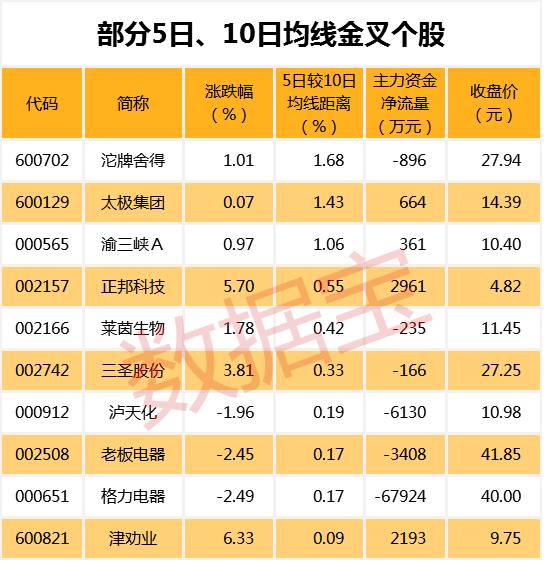 最新数据显示,有11只A股的5日均线主动上穿10日均线,其中