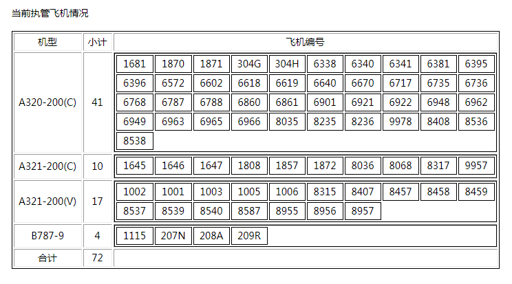 当前执管运营飞机:
