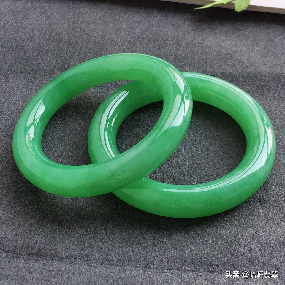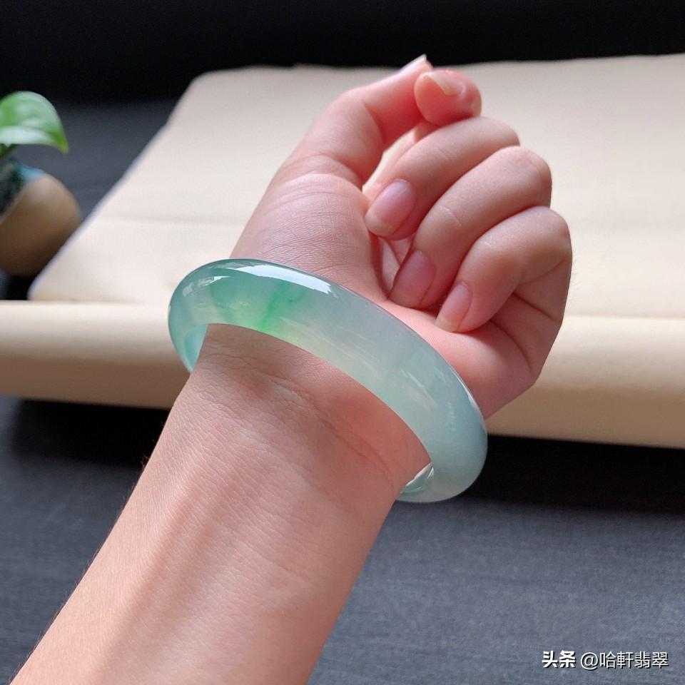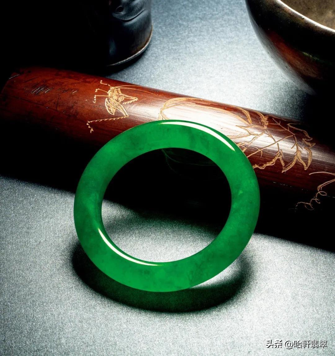 可就视觉效果来说,这只满绿手镯还是比不上无色冰种翡翠挂件那般通透。