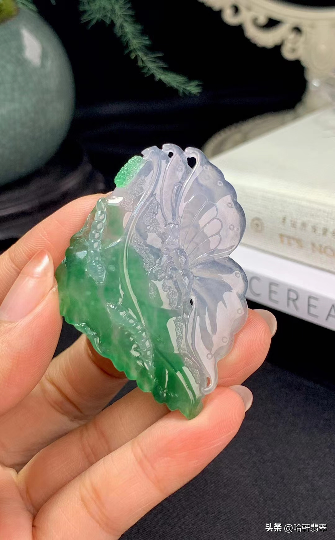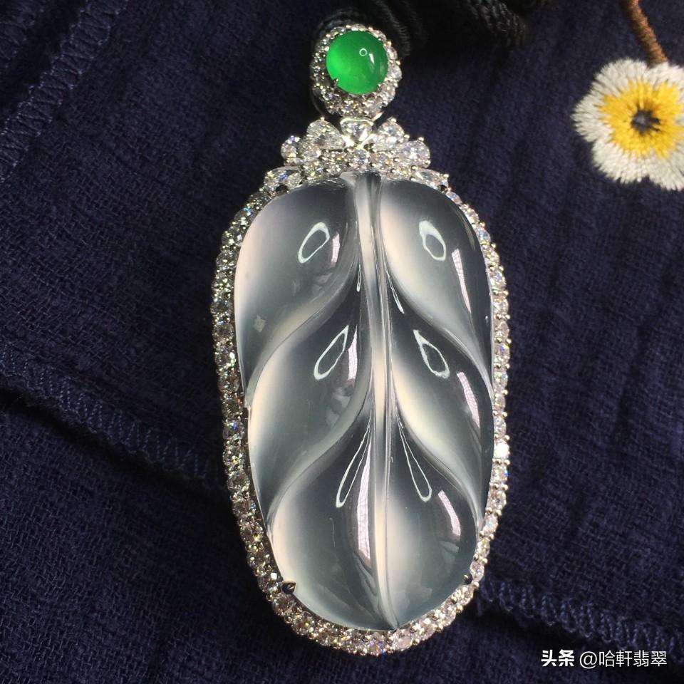 比如上面这件蓝水翡翠叶子挂件,乍一看貌似是无色的。