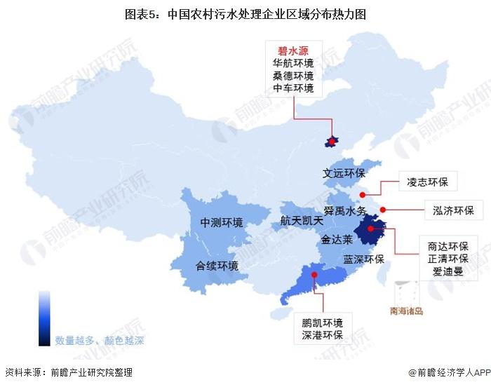 目前,农村污水处理领先企业大多集中在北京、浙江、广东、山东、湖南、福建等地,其中北京拥有碧水源、华航环境、桑德环境和中车环境等领先企业;浙江则拥有商达环保、正清环保、爱迪曼等领先企业。