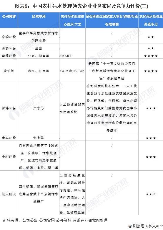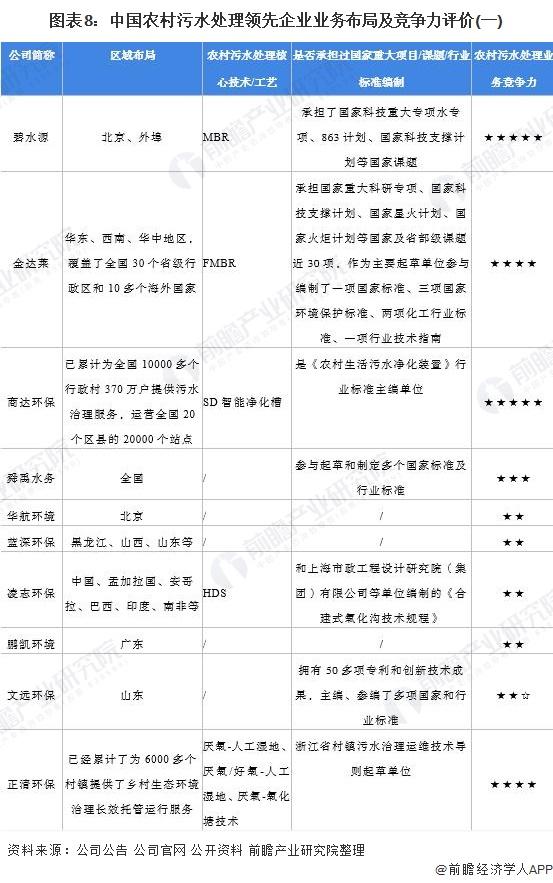 4、中国农村污水处理行业企业布局及竞争力评价