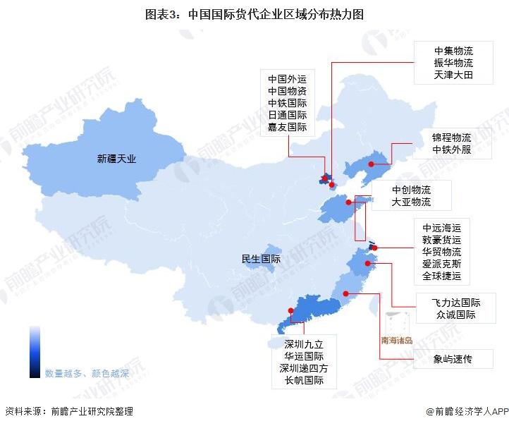 国际货代行业TOP10企业基本信息、国际货代行业竞争梯队、国际货代企业区域分布热力图