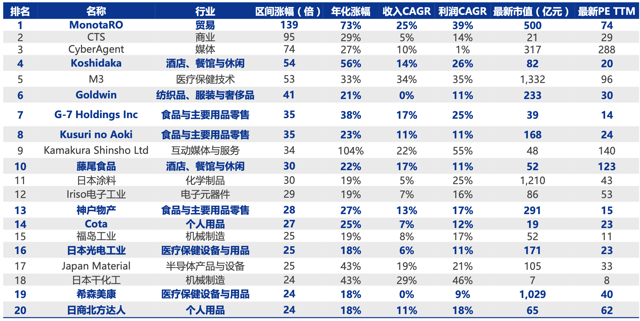 1998-2018年日股涨幅前20中有11家为消费类企业,行业分别是