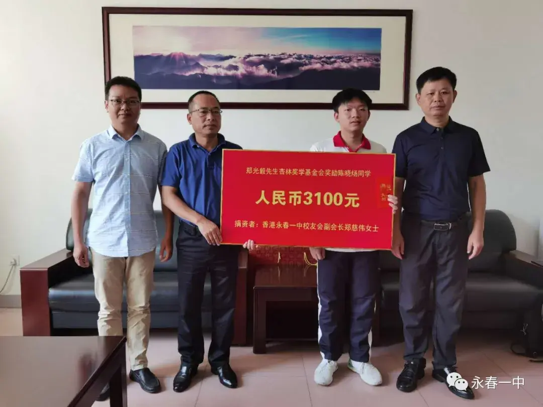 “郑光毅先生杏林奖学基金会”是高中30组校友、香港永春一中校友会副会长郑慈伟女士为回报母校培育之恩及纪念其先父郑光毅先生捐资二十万港币而设立的。基金汇兑成人民币形式作永久定期保本存款,每年取利息,用于奖励立志救死扶伤的崇高事业而被录取进入医科大学考生中高考成绩最高的永春一中应届高中毕业同学。