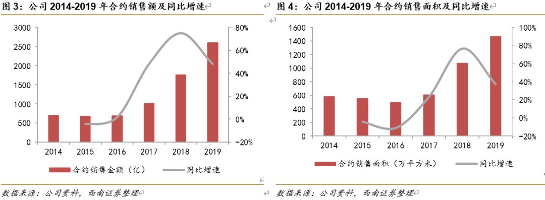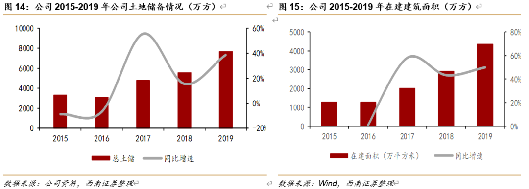 。2019年,公司实现销售金额为2,601亿元,规模位居行业第九位,远超年初2,100亿的销售目标,同比增长48%,增速在行业TOP20里面位居第二位。公司以福州、苏州、杭州、青岛、北京、武汉、成都、深圳等重点城市为核心,逐渐辐射海西、长三角、山东半岛、大湾区等,得益于强大的综合开发能力和收并购能力,公司一二线土储持续增长。2020年公司可售货值5000亿,预计公司能实现销售额3200亿,对应增速23%。