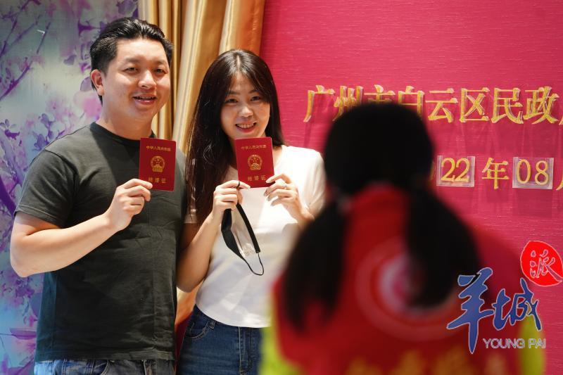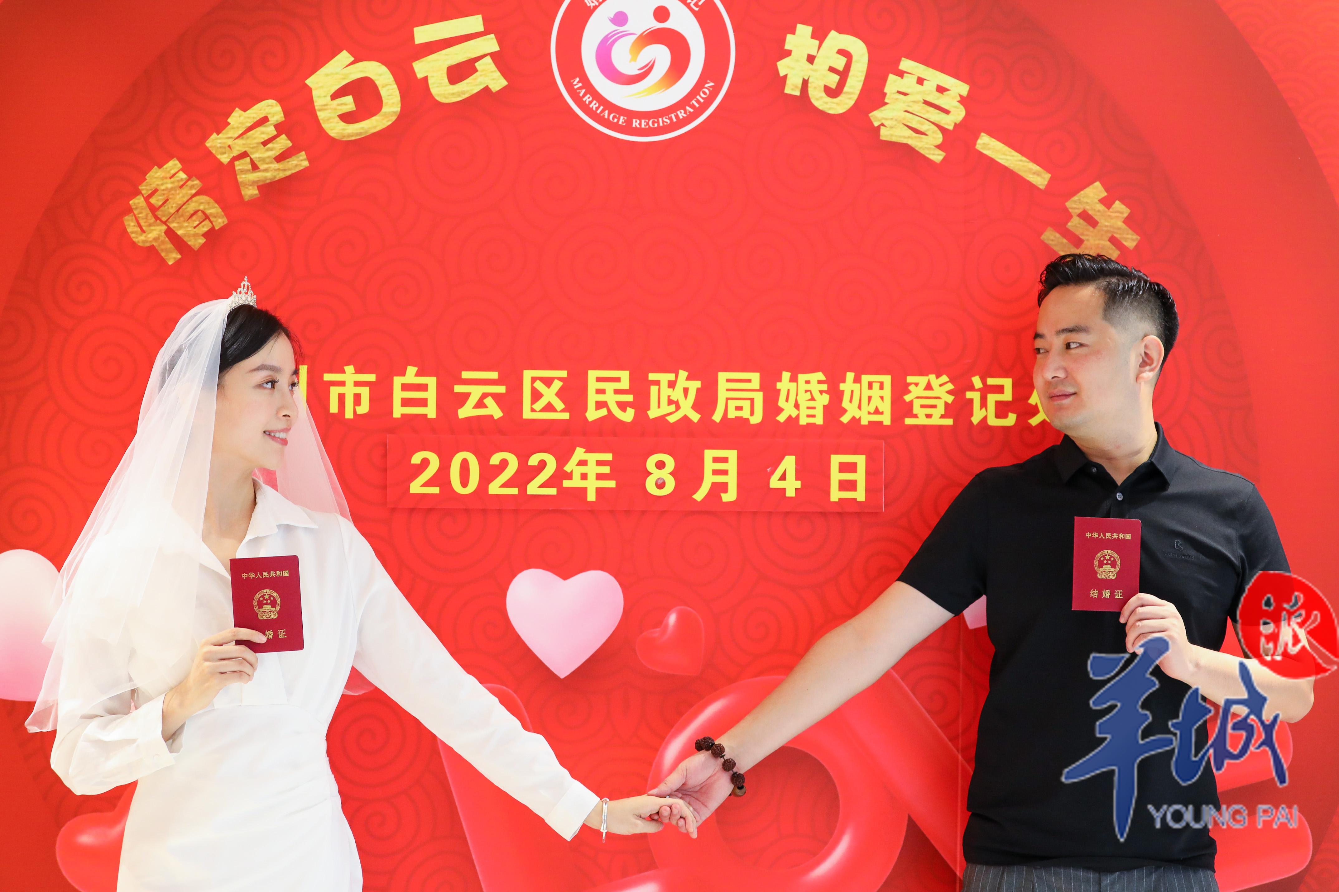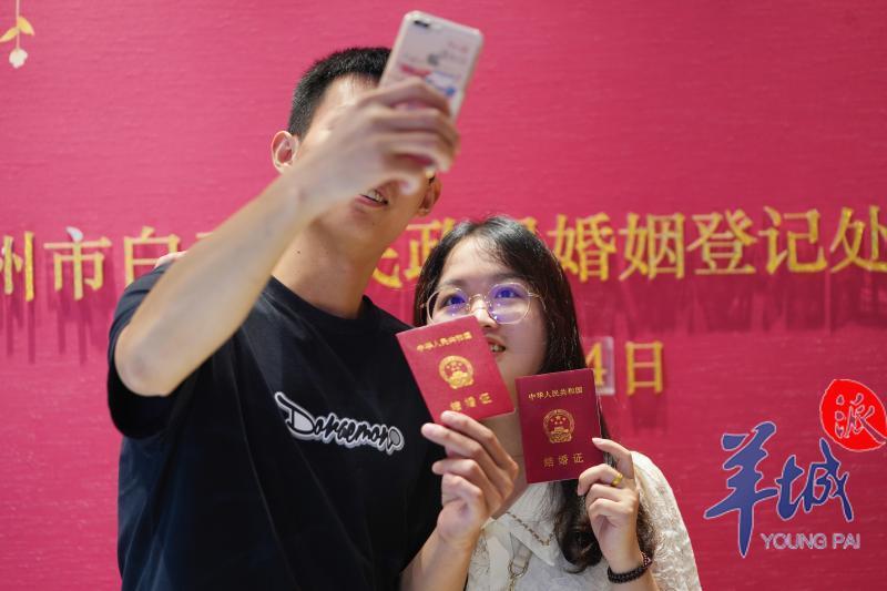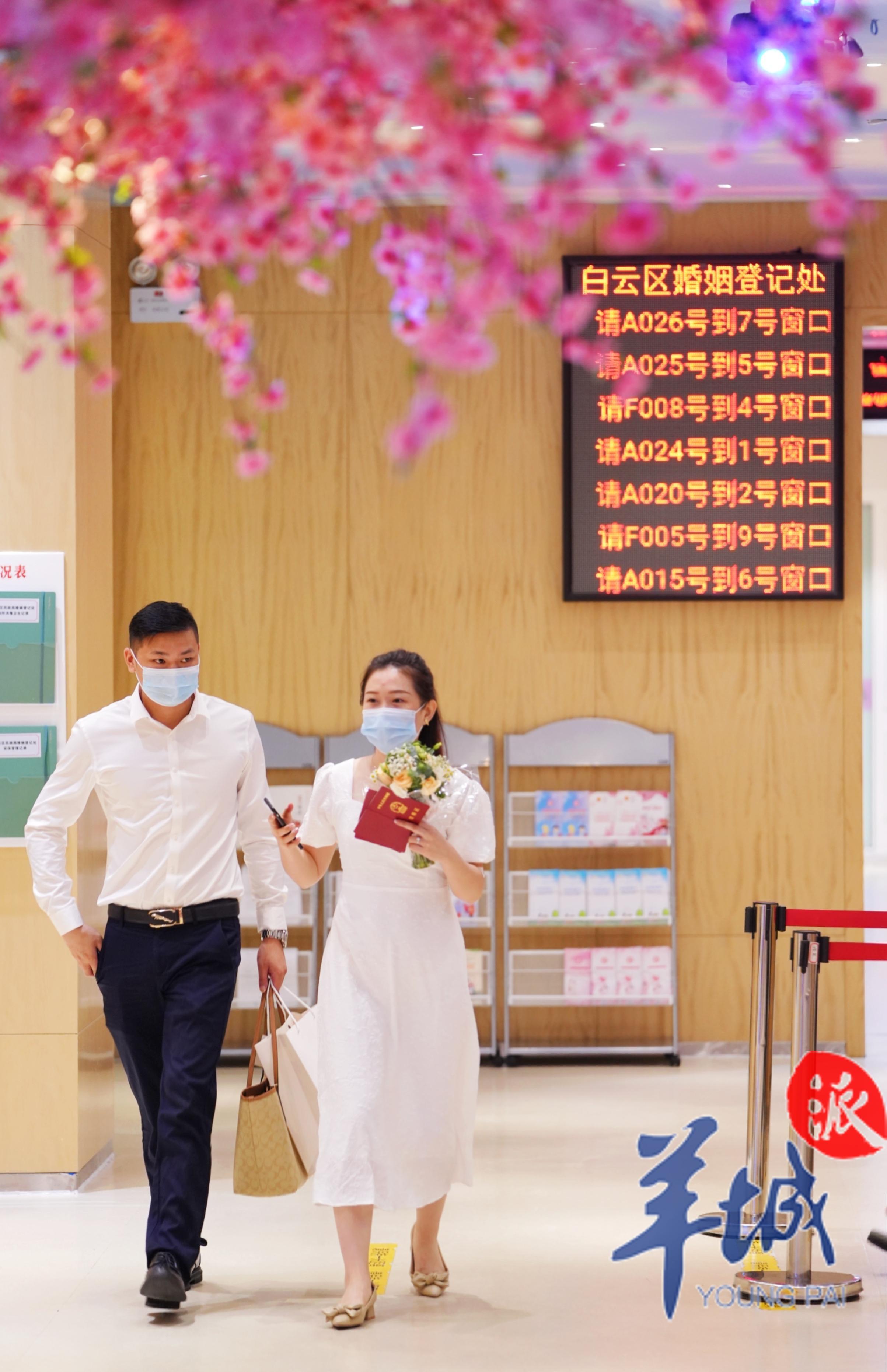 白云区民政局婚姻登记处主任刘青云介绍,当天该婚登处的结婚登记预约量达160多对,是平时登记数量的两倍。“我们的工作人员提前了半小时上班,也会为最后一对预约登记的新人办完登记再下班。”她说。
