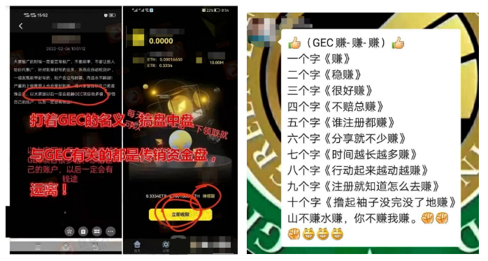 GEC是一个名为“世界环保基金会”的组织发行的虚拟货币,这个“世界环保基金会”听起来倒是挺高大上,但实际一搜索,并不是什么官方组织机构,只是这个发币方给自己起的名字,早在2019年6月就已被浙江省民政厅认定为非法社会组织。而且,GEC环保币并不是国际认可的主流虚拟货币,甚至是否属于虚拟货币、该币的产生是通过运算方式还是运营方自行释放等情况均无法查证。2022年,民政部门的官网上发布了一批被取缔的非法社会组织,其中GEC环保币郝然在列。